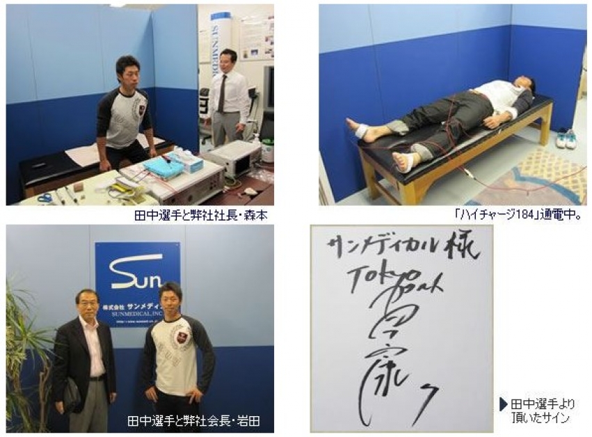 3月下旬、堅守で魅せるヤクルト田中浩康選手にご来社いただき、「アキュスコープ80L」「ハイチャージ184」をご体感いただきました。特に、体力の消耗を最小限に抑え、その後の疲労回復をスムーズに行う「ハイチャージ184」を行った後、「体が軽いですね。」とおっしゃっていただきました。翌日のオープン戦を期待していましたが、残念ながらノーヒット。でも、3月26日の開幕戦は今期初ヒット!今期の田中選手のご活躍に期待したいです。